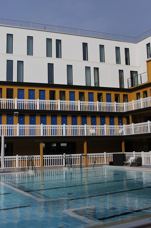 pour en faire un lieu haut de gamme. Menuiserie des cabines de bains.